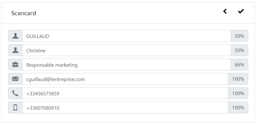 Les corrections apportées par l’utilisateur à la proposition initiale de YellowBox ScanCard sont automatiquement remontées au serveur opérant la collecte des informations.