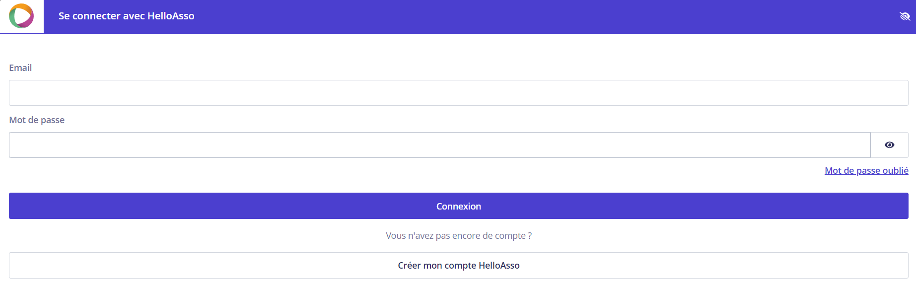 Pour que le plugin soit actif, il est nécessaire d’effectuer la connexion avec le compte Hello Asso. Pour ce faire, il convient de :