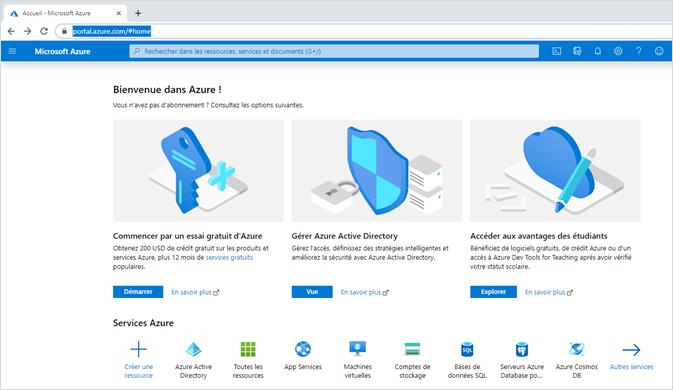 L’inscription est réalisée via connexion au Portail Azure :
